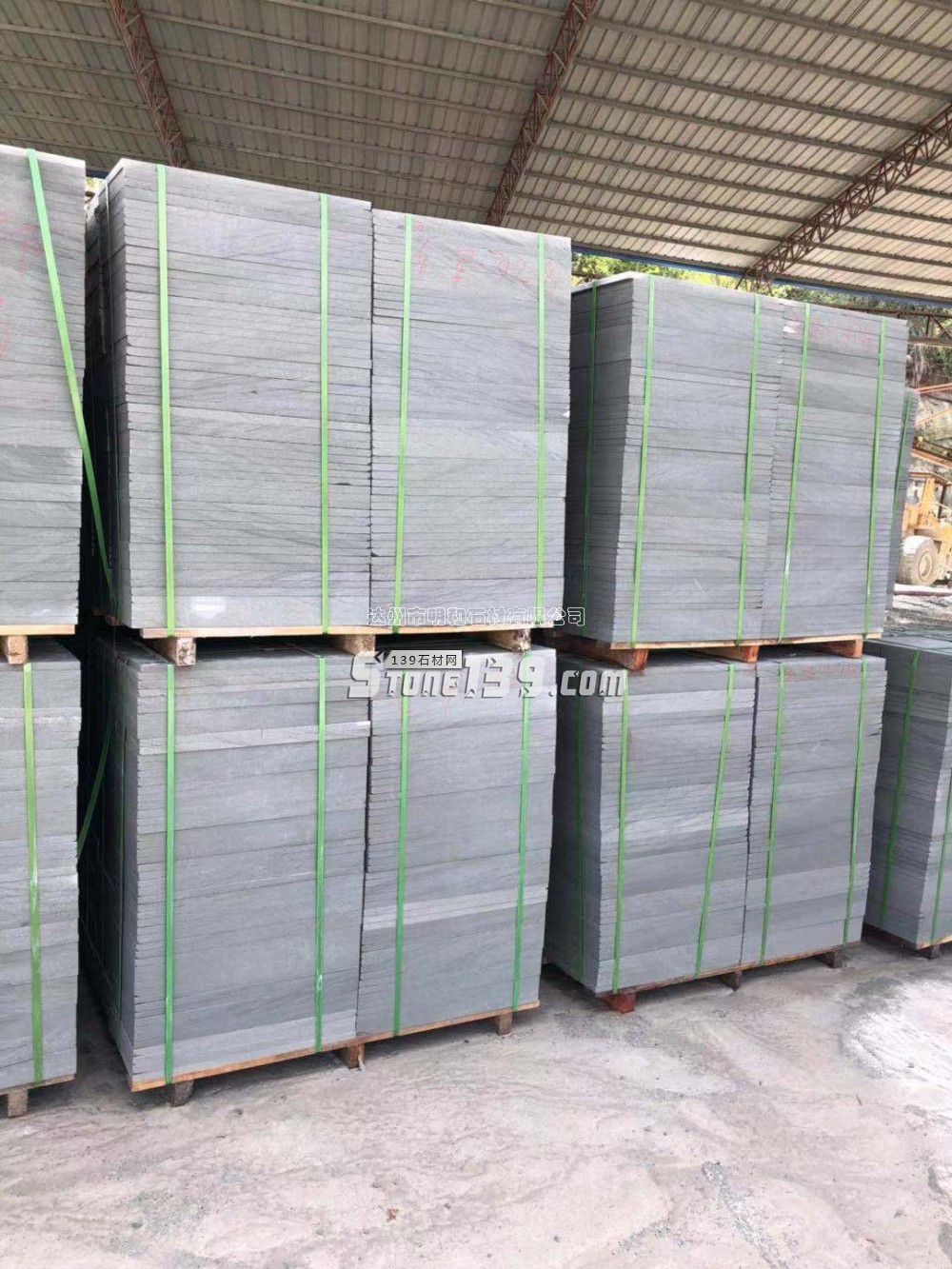 3 、切片:根據不同產品的規格要求,依照青石紋路,操縱切片機,切成大小不一的青石板、條、柱等,如果要特薄形的青石板,還需要專業技術工人進行手工剖開。