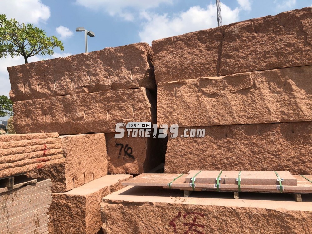 福建水頭市場(chǎng)光澤紅荒料堆場(chǎng) 海西荒料市場(chǎng) 花崗巖 光澤紅
