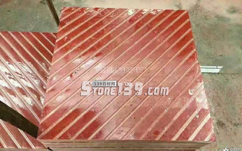 中國紅拉槽 鋸齒面 橫向拉槽 倒角拉槽拼圖案 鋸齒面 流水石材 中國紅花崗巖