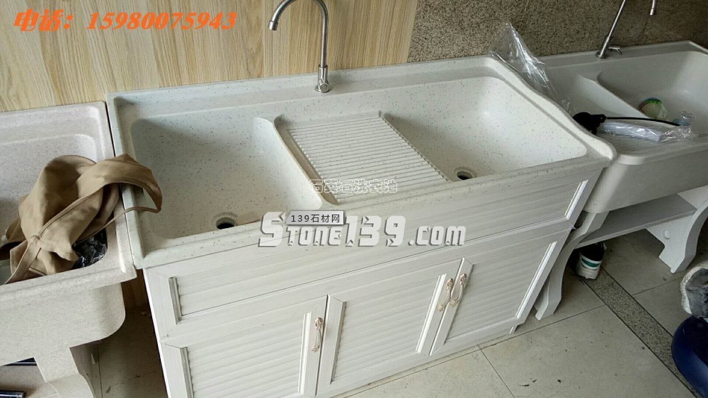 雙盆洗衣池帶柜子 (白色石英石洗衣池 家用)