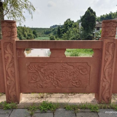 紅砂巖欄桿 達州紅石 毛板地鋪料 紅砂巖荒料 紅色欄桿 護欄 四川紅色石材河道欄桿供應
