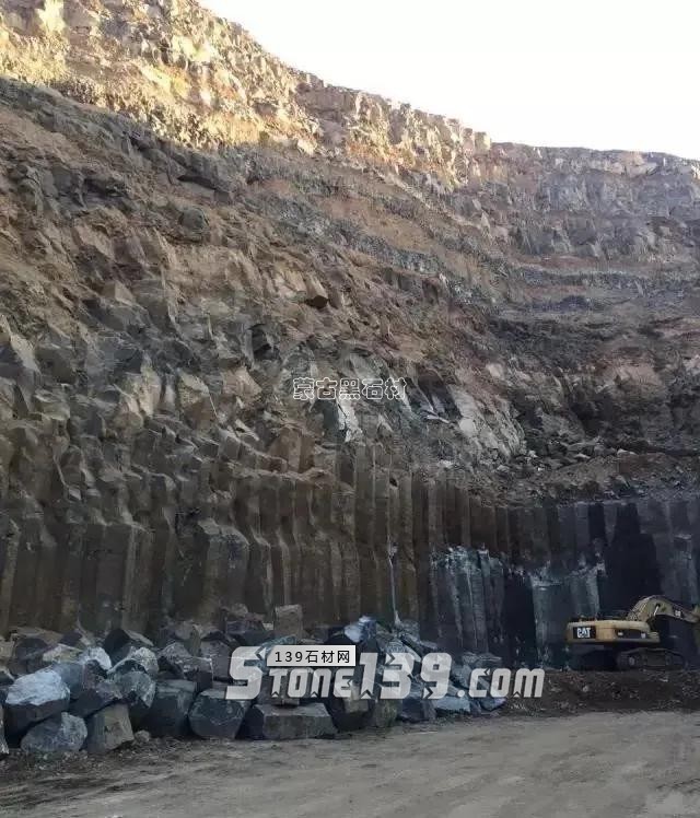 (蒙古黑礦山獨特的柱狀節理) 玄武巖獨特的礦山礦體結構