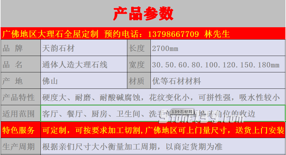 | 天然石線條270cm*8/10/12/15cm | 人造石線條270cm*8/10/12/15cm | 石材大板平方米 |