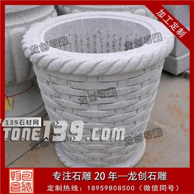 石材花缽選材非常豐富,常見的花缽石材有花崗巖花缽,大理石花缽,砂巖花缽,埃及米黃花缽,黃銹石花缽,黃金麻花缽,漢白玉花缽,白麻花缽,芝麻灰花缽等等?;ɡ彽目钍揭彩嵌喾N多樣,歐式花缽,現代花缽,古典仿古花缽,圓形花缽,長方形棱角花缽等,花缽的表層可雕刻多種花樣, 有雕刻蓮花瓣的,有動物雕塑或是人物雕塑的,常見的就是男童小孩造型的雕塑花缽。長方形石材花缽價格一般根據其材質的不同、顏色不同、大小及工藝的復雜程度價格區間一般在600--2500元每件。
