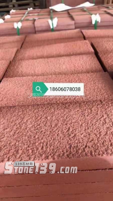 介紹:特性:紅色,沙質細沙,色差小,儲量大,穩定。 用途:別墅外墻裝飾,園林景觀,高檔小區,電視背景墻,道路工程。 詳細介紹:產地四川自貢,硬度高可以做亞光面、荔枝面、噴砂面、自然面等。也可板材、線條、異形、雕刻等,是四川砂巖中儲量最大的產品之一。