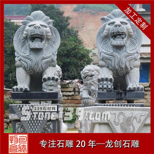 龍創石雕廠家解說景區入口石雕獅子一對價格要考慮以下三點: