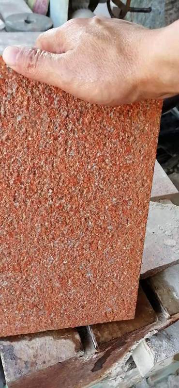 荔枝面表面的點是凸出來的,荔枝面一看是人工處理的,會出現(xiàn)比較均勻的破壞面,有明顯的比較規(guī)律的顆粒出來。 火燒面大多是凹進去的,火燒面高溫加熱快速冷卻形成,機切面是設備切割形成。