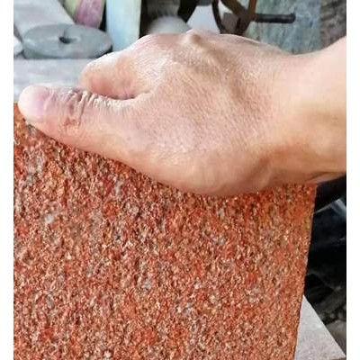 映山紅等紅色花崗巖火燒面和機切面.荔枝面的加工方式不同