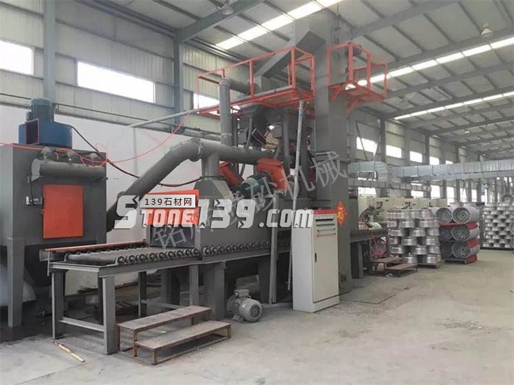 本設備主要包括:進料架、主機拋丸系統、提砂系統、滾筒輸送系統、除塵系統和電氣控系統等六部分。