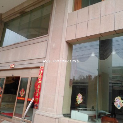 荔枝面帝王紅石材幕墻案例 與玻璃窗戶搭配
