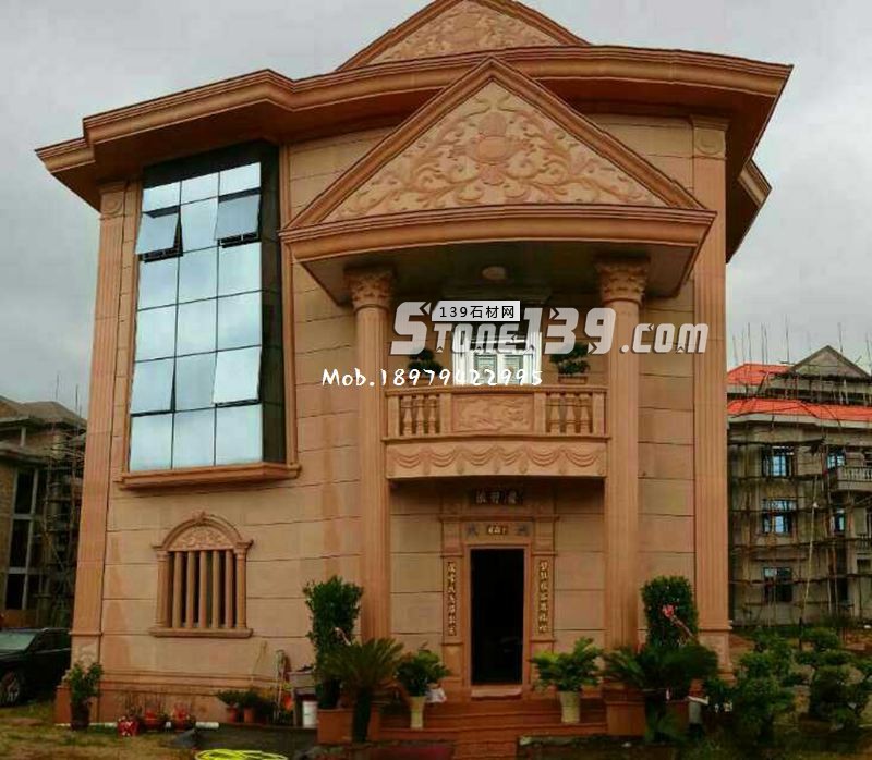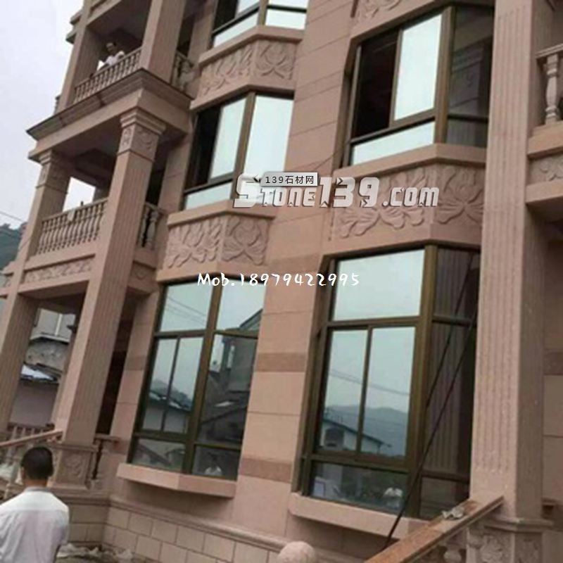 帝王紅石材別墅家裝應用案例 窗套 門套 柱子 外墻 欄桿浮雕等外墻別墅裝飾石材應用