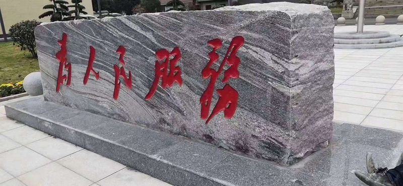 浪淘沙門牌刻字(為人民服務)湖南浪淘沙花崗巖荒料