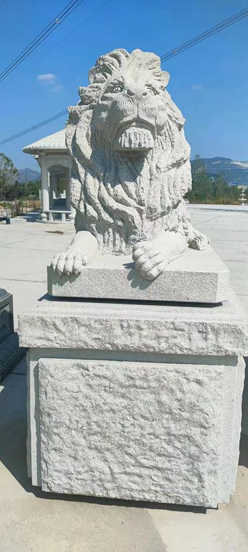石雕像的背上背著蓮花座,連接著圓形頂棚,造型很別致。像這樣擺放在室外廣場的石雕象一般都是采用花崗巖定制的,因為花崗巖石材耐風化能力很好,相對比較適合擺放在室外。不僅可以給周邊錦上添花,還可以給人們帶去美好的祝福,真是一件不可多得的室外擺件。