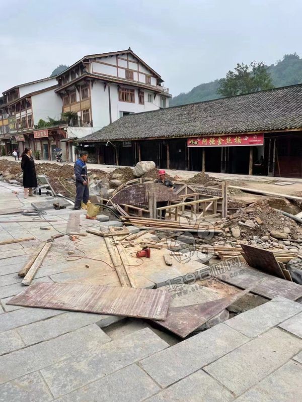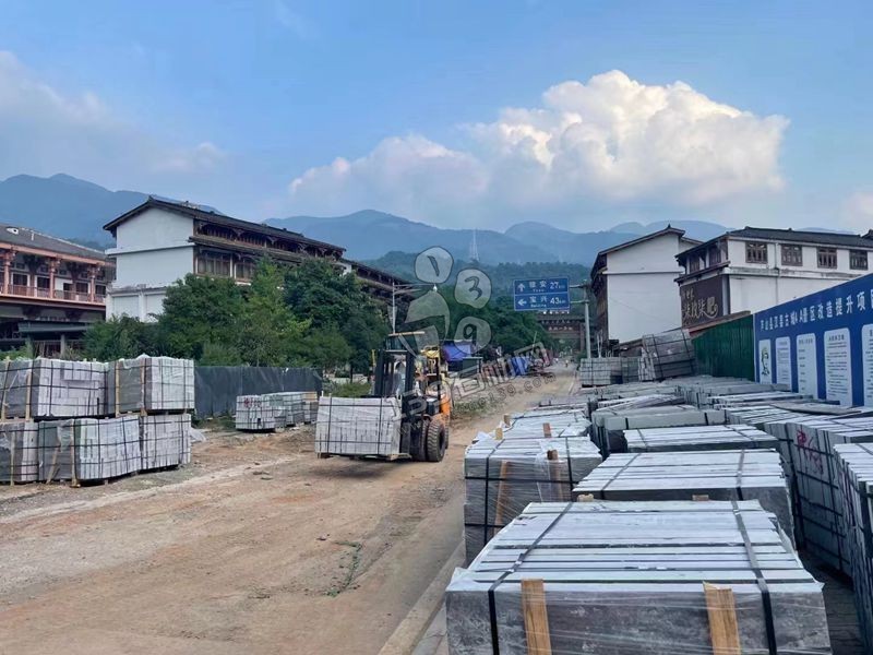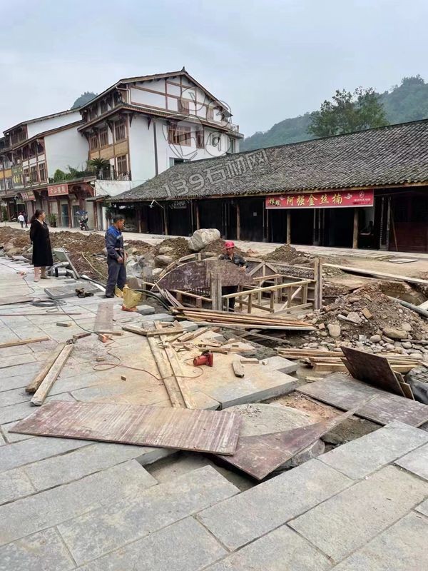 貴州青石條板地鋪工地施工 青石復(fù)古地鋪施工 根雕一條街