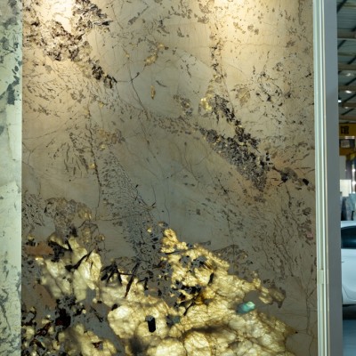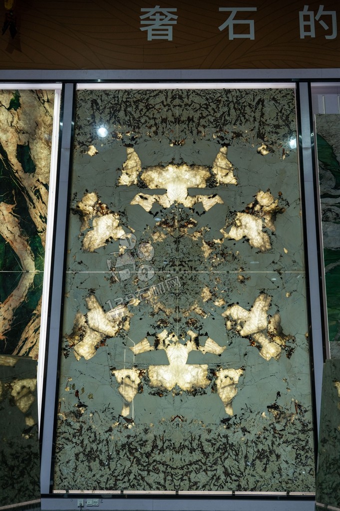 照明設計:為了增強透光效果,透光奢石背景墻的孤品通常還會結合照明設計。通過在透光材料周圍或內部安裝燈光,可以使石材在光線照射下展現出瑰麗的效果。