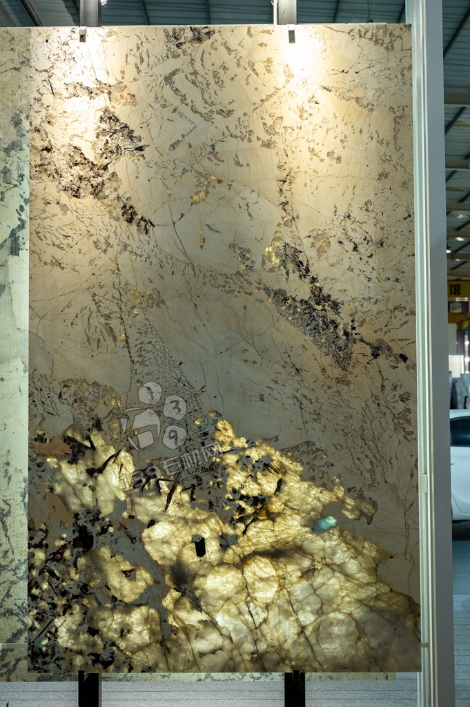 透光奢石背景墻是一種特殊的背景墻材料,它結合了奢石的質感和透光材料的特性。透光奢石背景墻的特點是在石材上融合了透明或半透明的材料,使光線能夠透過石材,創造出獨特的視覺效果。