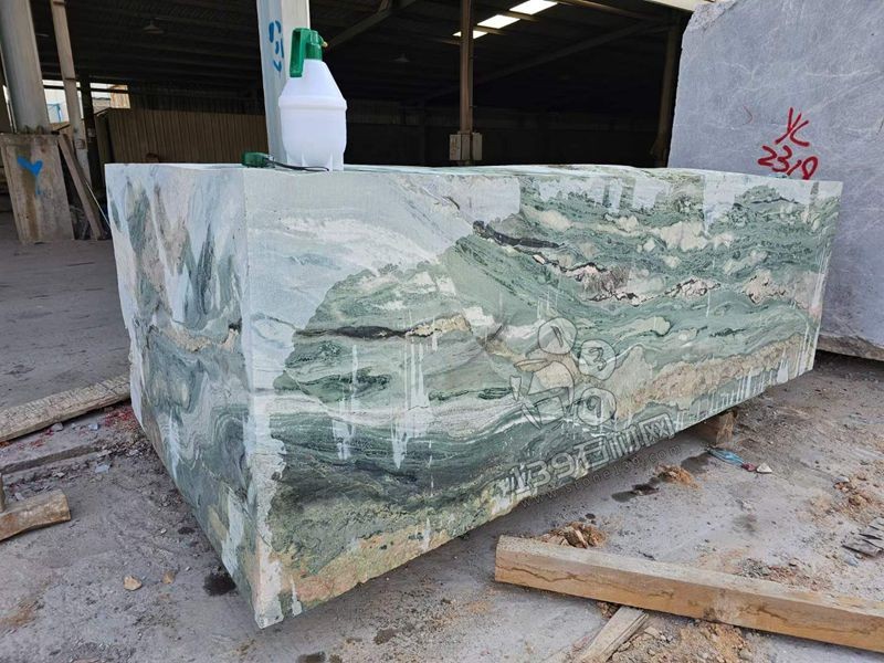 今天給大家介紹一款覓石石業的新品——綠色大理石迷霧森林。這款大理石有以下幾個特點: