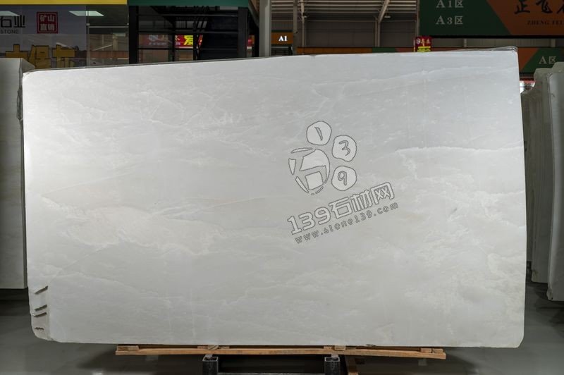 皇家白玉白底透光均勻分布的紋理類似天空中的白云,高貴典雅大氣,可實現光面、亞光面、噴砂面、流水面、自然面、抽槽、拉槽等多種工藝處理面