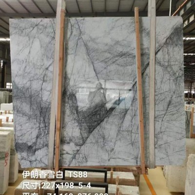 伊朗香雪白大理石是一種天然大理石,以下是其相關特點及市場情況: 特點 外觀:顏色潔白如雪,質感純凈,具有細膩的紋理,能為空間增添優雅、大氣的氛圍,常用于高檔裝修項目。 物理性能:硬度較高,莫氏硬度約為 3-4 之間,抗壓強度和抗彎強度較好,結構致密,不易變形,具有較好的耐磨性和耐久性,能夠長期保持美觀。 加工性能:易于切割、打磨、雕刻等加工,可以根據不同的設計需求制作成各種形狀和尺寸的板材、臺面、雕塑等,滿足多樣化的裝飾要求。 用途 建筑裝飾:廣泛應用于室內外墻面、地面、柱面等裝飾,如酒店大堂、別墅客廳、商業空間等,打造出豪華、高檔的裝修效果。 家居裝飾:可用于制作廚房臺面、浴室柜臺面、窗臺板、樓梯踏步等,不僅美觀,而且實用耐用。 工藝品制作:因其美觀的外觀和良好的加工性能,還可用于制作各種工藝品,如雕塑、擺件等,具有較高的藝術價值。 市場價格 其價格通常會因石材的品質、規格、產地、市場供需等因素而有所不同。在正常市場情況下,每平方米的價格大概在 200-300 元左右 ,如果是特價活動,可能會有一定的優惠幅度。