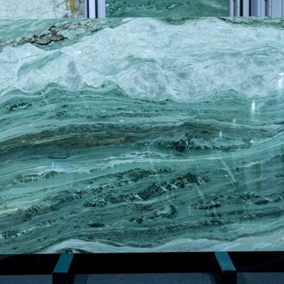 色相譜:青綠基底含鉻云母脈絡(Cr?O?含量0.3%-0.7%),光照下呈現苔蘚漸變效果