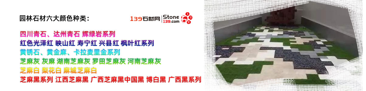 紅色石材主要包括光澤紅、映山紅、壽寧紅、楓葉紅、蝦紅等;青綠色石材主要以青石和輝綠巖為代表的,比如四川青石、福建青石等;黃色石材通常是銹石和黃金麻以及卡麥等;黑白灰三大類主要就是芝麻系列,芝麻灰、芝麻白、芝麻黑以及各地的黑色石材。