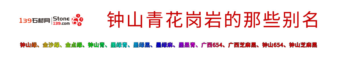 鐘山青花崗巖的那些別名。鐘山綠、金沙綠、金點綠、鐘山青、墨綠青、墨綠黑、墨綠麻、墨黑青、廣西654、廣西芝麻黑、鐘山654、鐘山芝麻黑